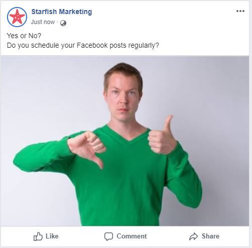 For example, ask Yes or No? Do you schedule your Facebook posts regularly?